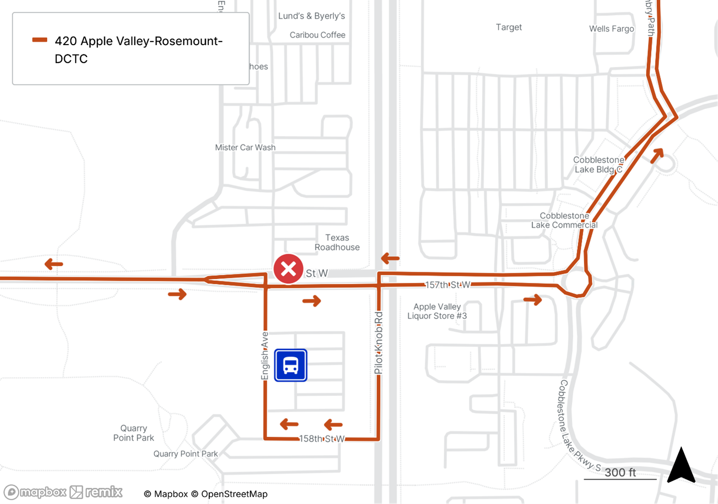 Route 420: A stop will be added at 157th Street Station in both directions (#30130). Stop #30026 (157th St at Texas Roadhouse) will be removed.